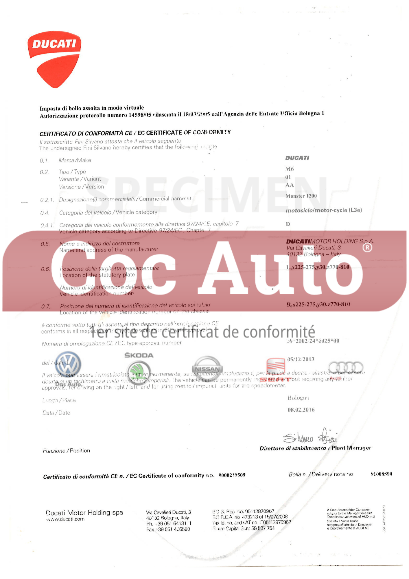 (Attestation d’homologation Ducati)