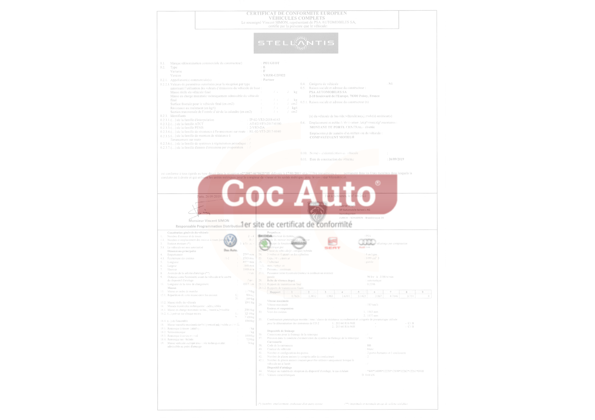Cocauto, l’agence française numéro 1 en France et en Europe vous fournit le certificat de conformité officiel obligatoire pour l’ANTS et les préfectures européennes pour vos démarches d’obtention du certificat d’immatriculation.