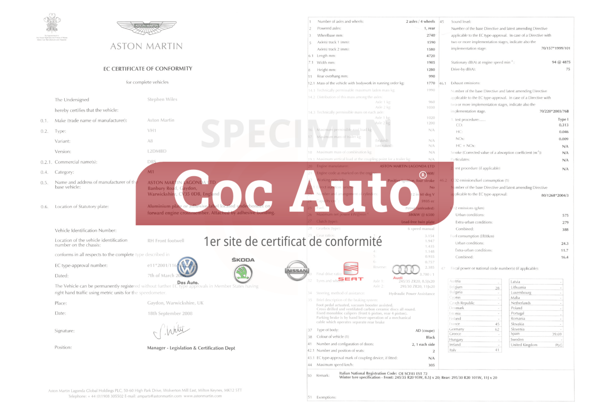 Certificat de conformité Aston Martin (COC Aston Martin)