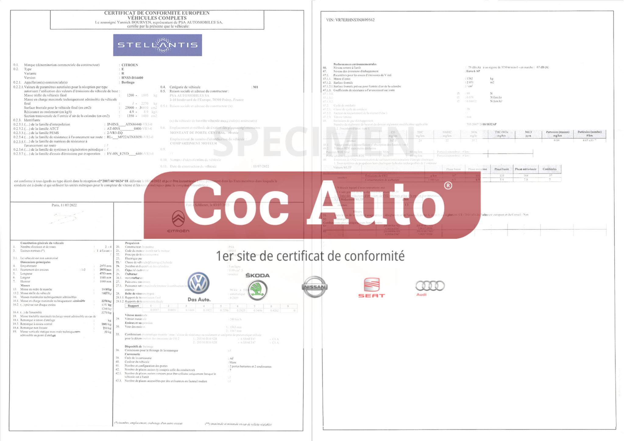 Certificat de conformité Citroen (COC Citroen)