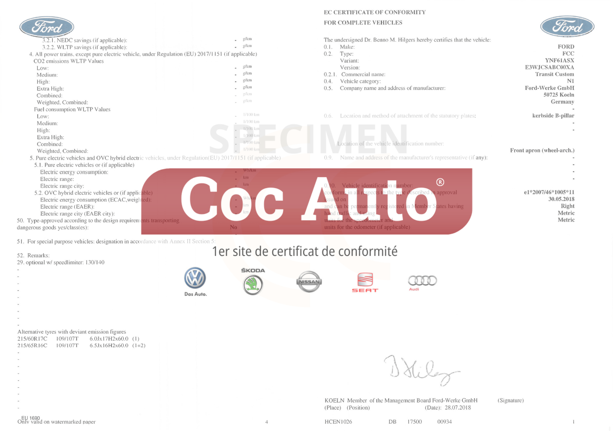 Certificat de conformité Ford (COC Ford)
