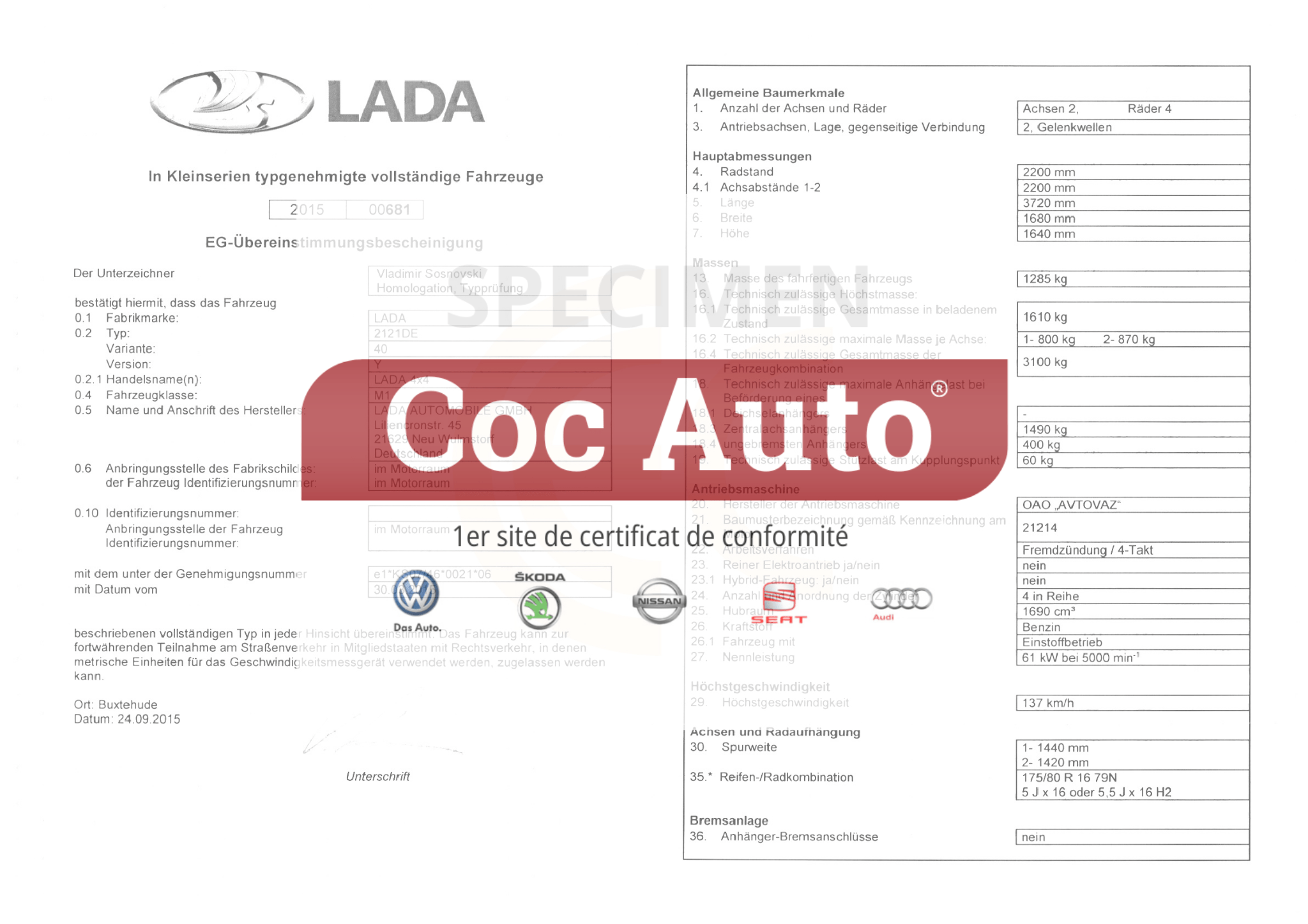 Certificat de conformité Lada