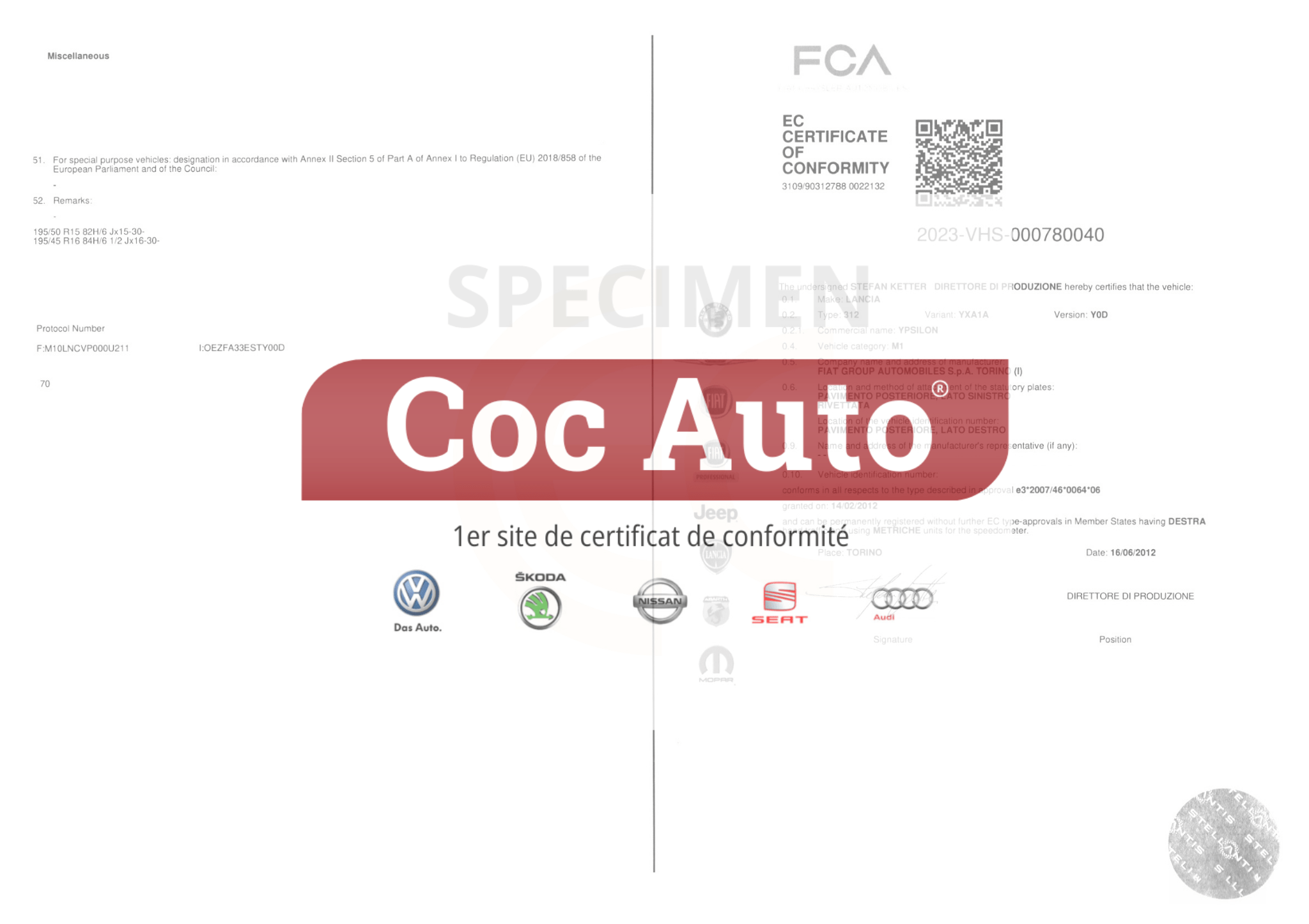 Certificat de conformité Lancia (COC Lancia)