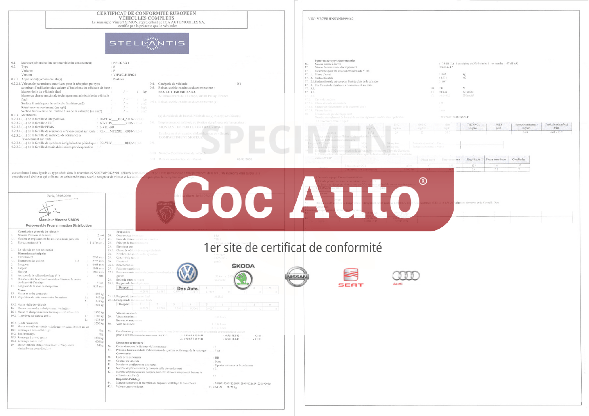 Certificat de conformité Peugeot (COC Peugeot)