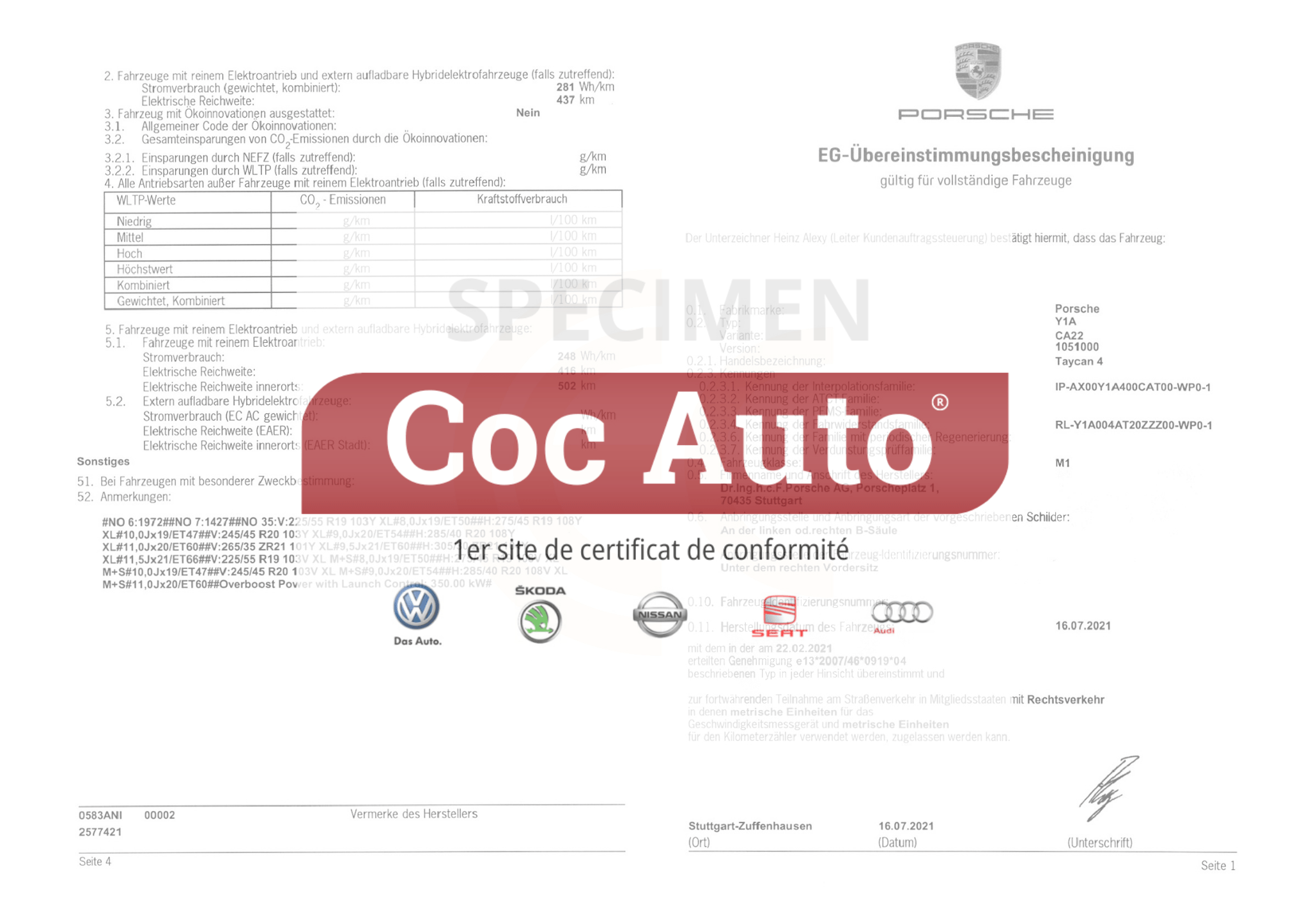 Certificat de conformité Porsche (COC Porsche)
