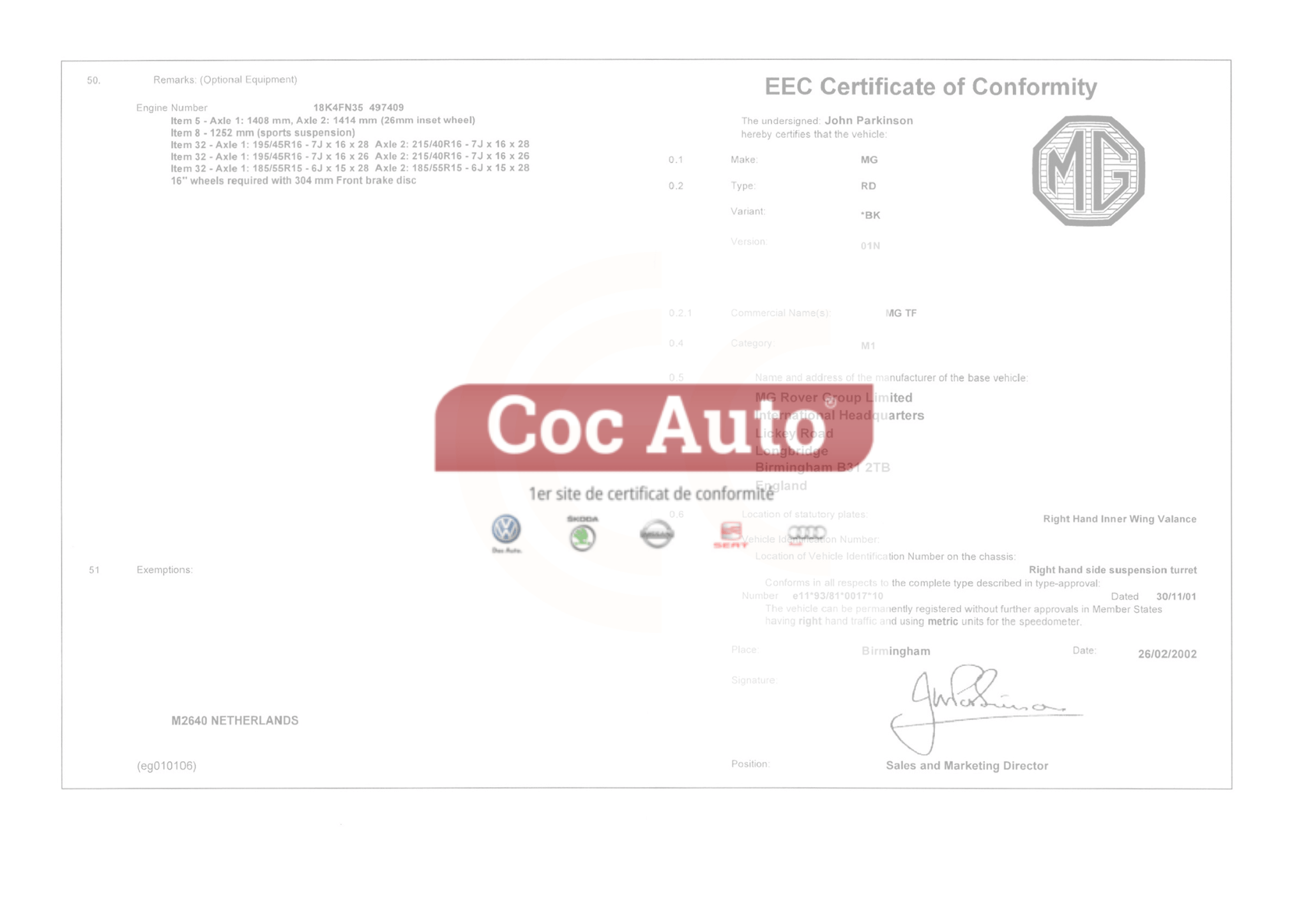 Le certificat de conformité européen appelé également COC est un document obligatoire pour immatriculer un véhicule dans tout pays européen en provenance d’un pays européen pour un autre pays européen.