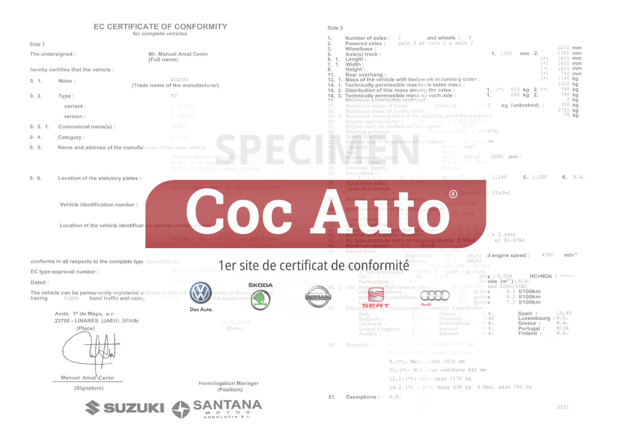 Cocauto, l’agence française numéro 1 en France et en Europe vous fournit le certificat de conformité officiel obligatoire pour l’ANTS et les préfectures européennes pour vos démarches d’obtention du certificat d’immatriculation.