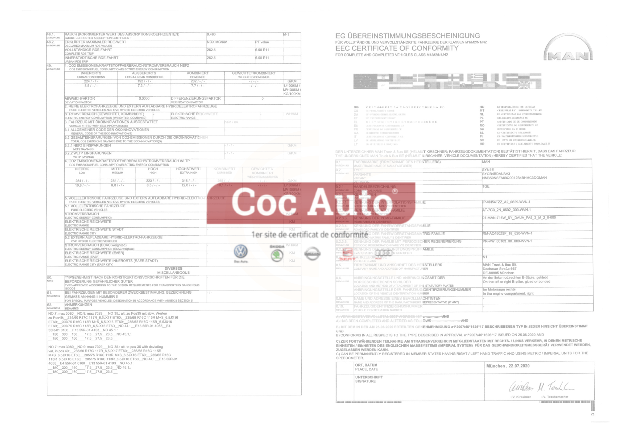 Certificat de conformité utilitaire Man
