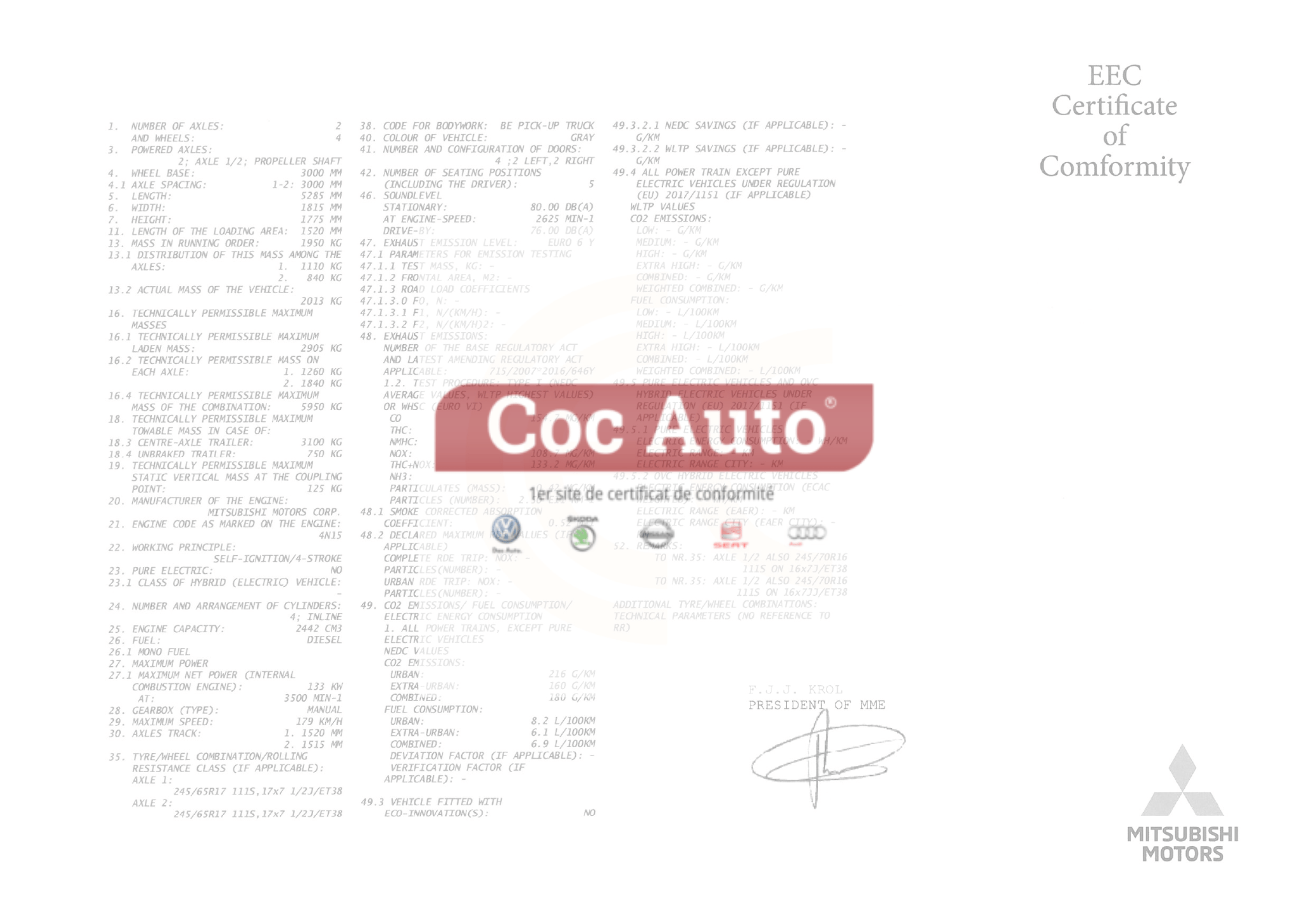 Le COC contient une cinquantaine de points de conformité permettant de vérifier si celui-ci est aux normes. Il comprend la taille des pneus, la source d’énergie, la puissance fiscale, le nombre de siège…